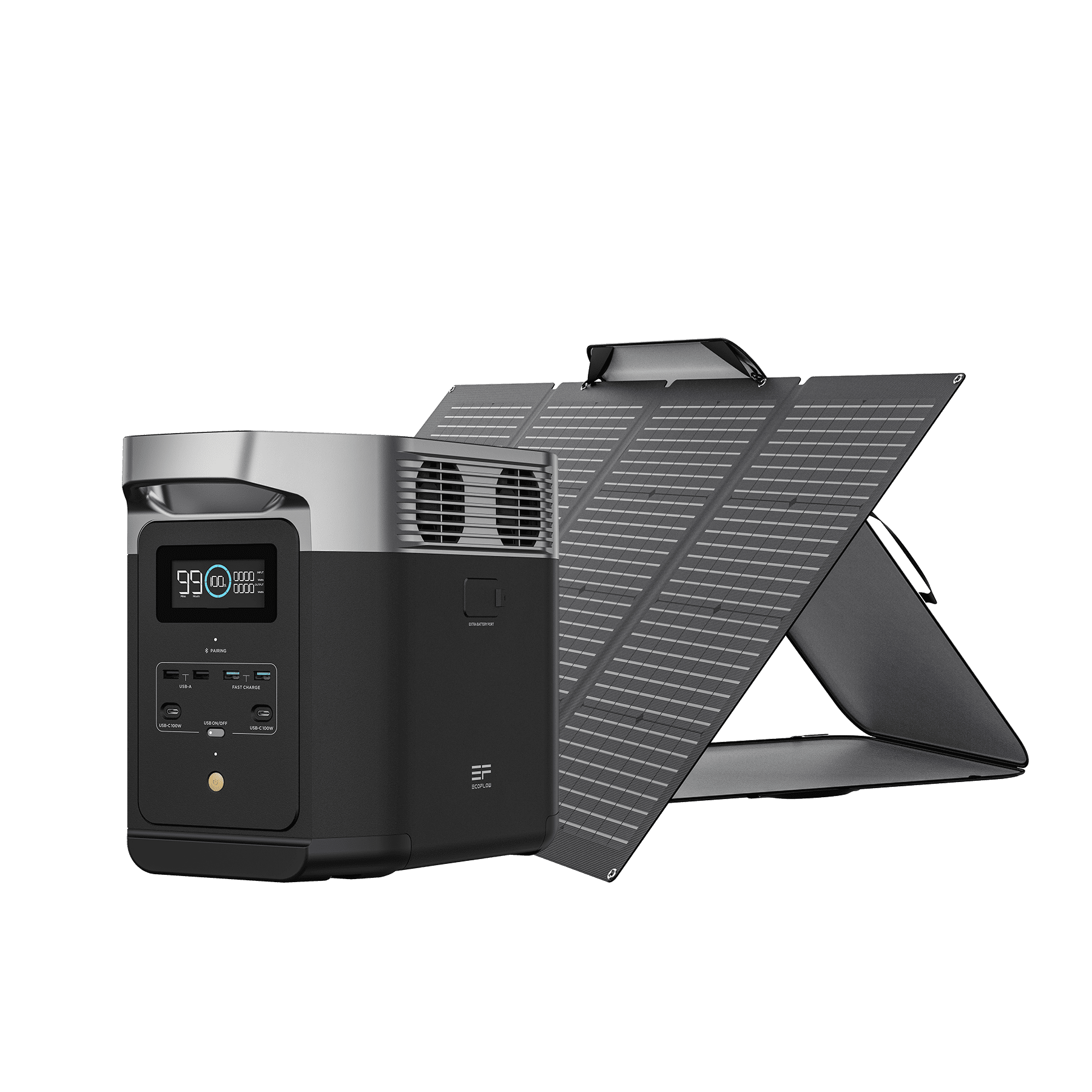 Se puede combinar con paneles solares y cargar en tan solo 3-6 horas con 1 panel solar portátil 400 W o 2 paneles de 220 W. Con su algoritmo inteligente de seguimiento del punto de máxima potencia (MPPT), DELTA 2 puede detectar de forma activa la tensión y la corriente en tiempo real para alcanzar el punto de máxima potencia con una eficiencia superior al 98 %. Esto significa una carga más eficiente que otras marcas.